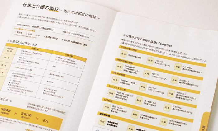 ひとりで悩んでいた社員も相談しやすくなり、社内制度で介護と仕事の両立をサポートできます。