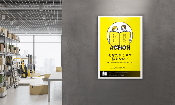 社内介護制度は伝え方次第でより深い浸透が期待できます。しかし、告知用のツールを作るにも一苦労。効果的に伝えられる「ポスター(PDF)」「イントラ用バナー」を無料でご提供します。